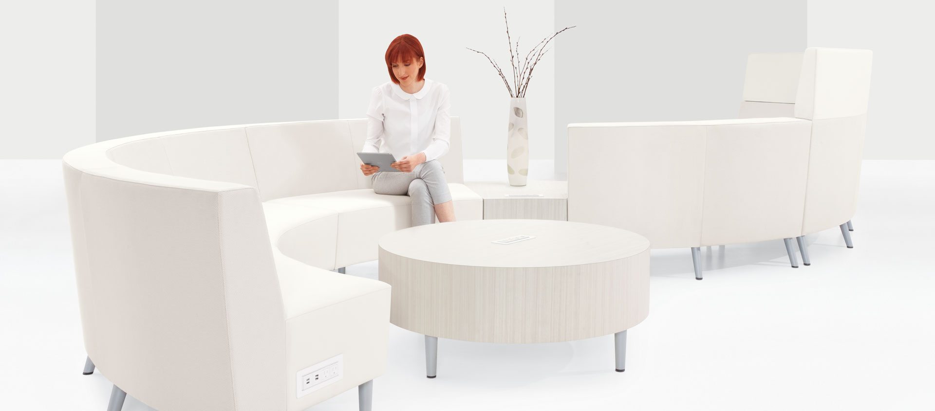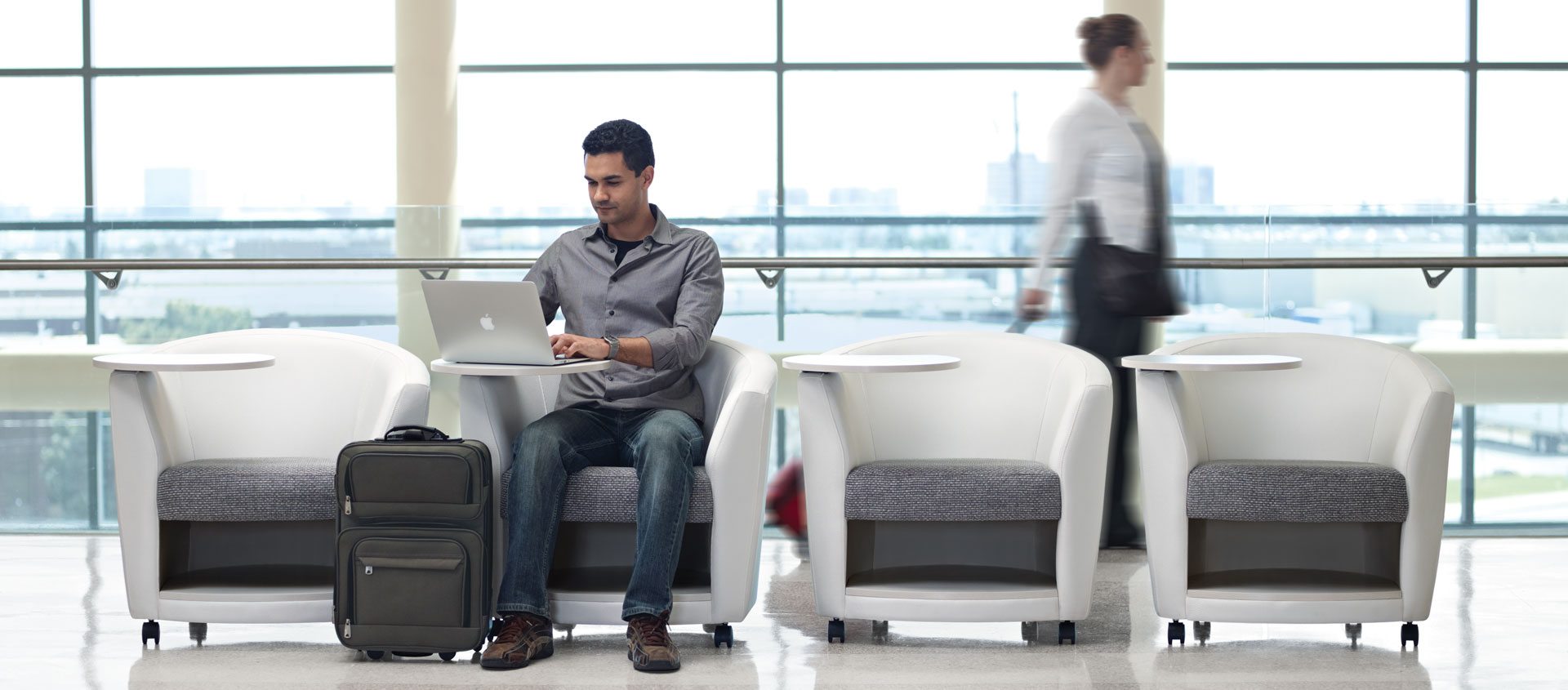Sirena is a modern club style series with a great ‘sit’ for short stops or unexpected layovers. Tablets, storage and casters make it a versatile spec for any lounge or collaborative application.