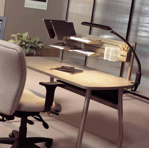 Height adjustable table allows users to sit or stand throughout the day promoting a healthy and productive work environment.