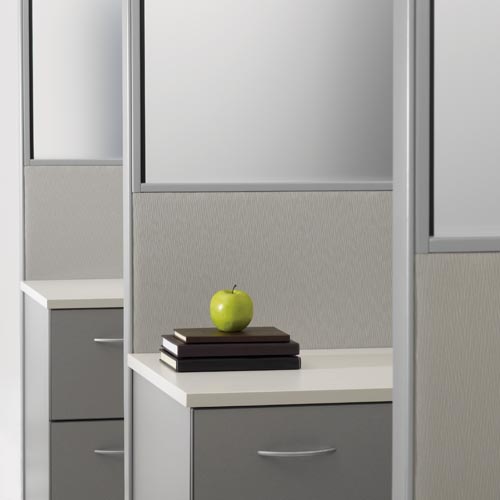 Detailed look at the steel case cubicles of the Pinnacle Interiors workstation